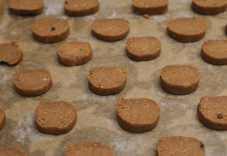 В купа смесете сухите съставки  - брашното, захарта, солта и орехите. Добавете яйцето а после и маслото. С ръце оформете тесто, завийте го във фолио и оставете в хладилника за 2 часа до 3-4 дни. Охладеното тесто може да разточите и да изрежете в различни формички, а може да оформите и топчета, аз го направих на саламче и го нарязах.